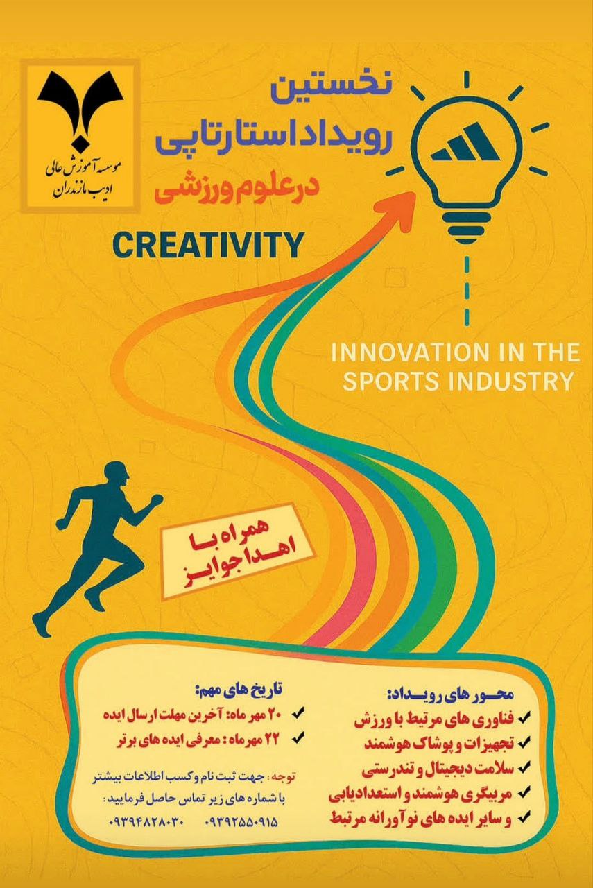 موسسه آموزش عالی ادب مازندران در راستای ارتقاء نوآوری در صنعت ورزش، نخستین رویداد استارتاپی در علوم ورزشی را با عنوان “Creativity” برگزار میکند. این رویداد فرصتی است برای کسانی که ایدههای نوآورانه در زمینه فناوریهای ورزشی، تجهیزات هوشمند، سلامت دیجیتال، و سایر حوزههای مرتبط با ورزش دارند.
